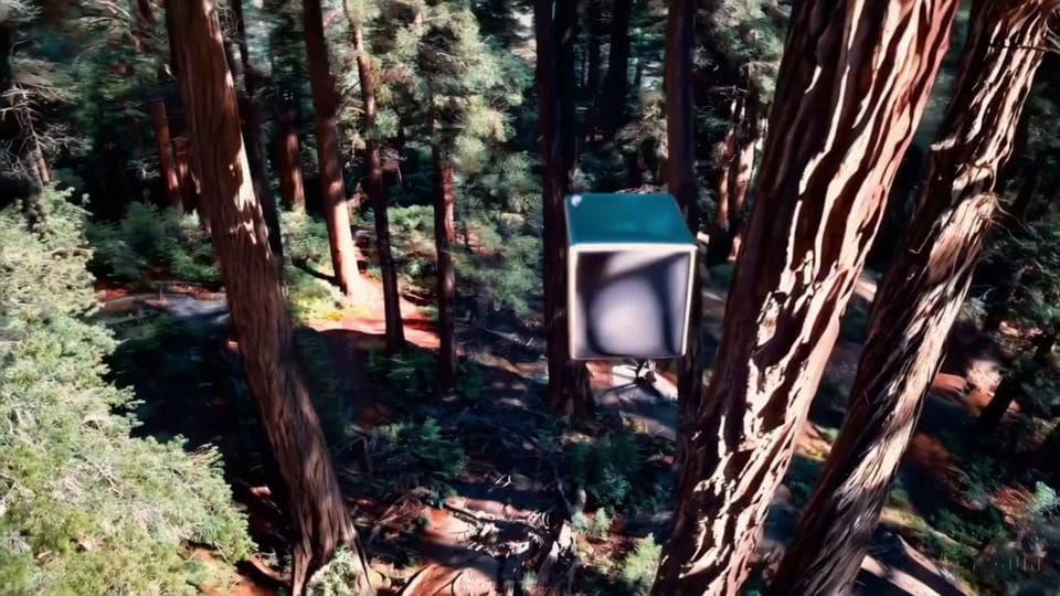 Prompt 1: sci-fi movie clip of a complex sci-fi cube that appears in a redwood grove in Northern California