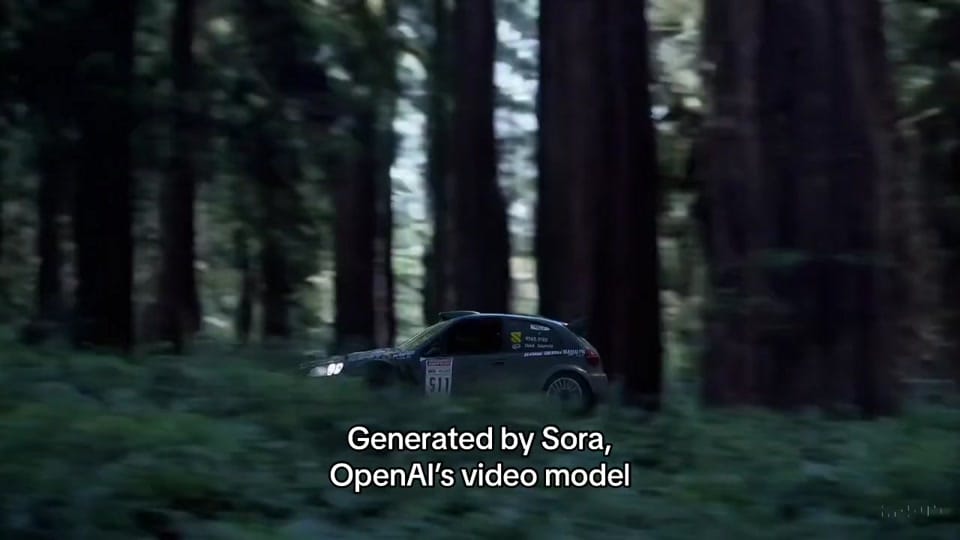 Prompt: A wide shot video of a rally car driving through a redwood forest and showing up behind the trees , spraying dirt into the air as it drifts around a sharp turn, cinematic film shot in 35mm, depth of field