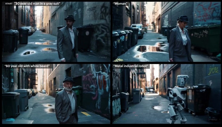 Our video model Sora is capable of creating videos from text, images, and other videos, but is also capable of changing just one element of a video, like these examples where just one variable is changed in each of these generations.