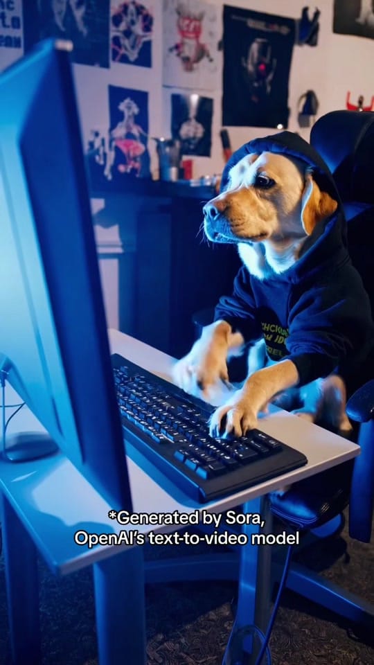 “a computer hacker labrador retreiver wearing a black hooded sweatshirt sitting in front of the computer with the glare of the screen emanating on the dog's face as he types very quickly.”