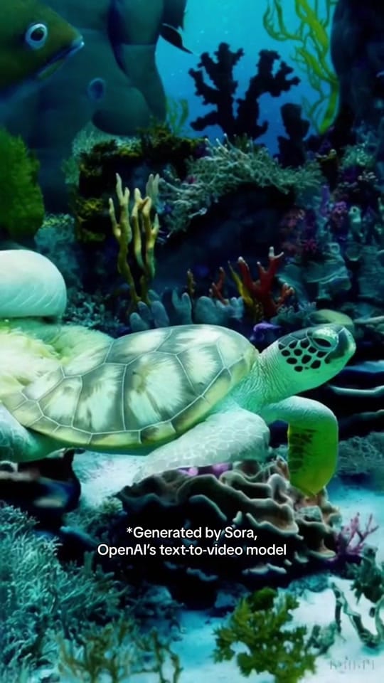 These are three generations with the same prompt: "a sea turtle journeys through an underwater landscape at a steady pace"