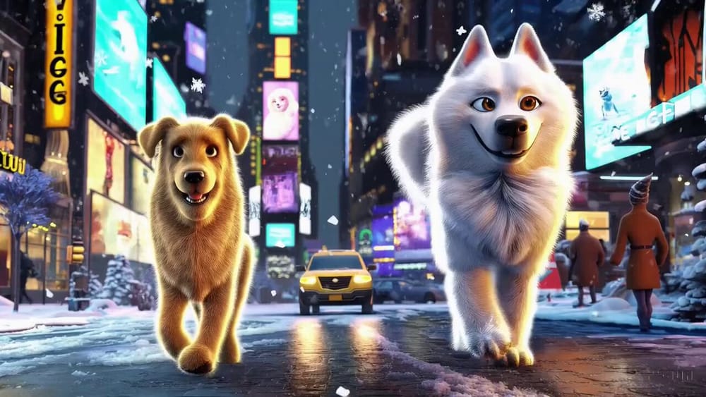For this video, I asked that a golden retriever and samoyed should walk through NYC, then a taxi should stop to let the dogs pass a crosswalk, then they should walk past a pretzel and hot dog stand, and finally they should end up looking at Broadway signs.